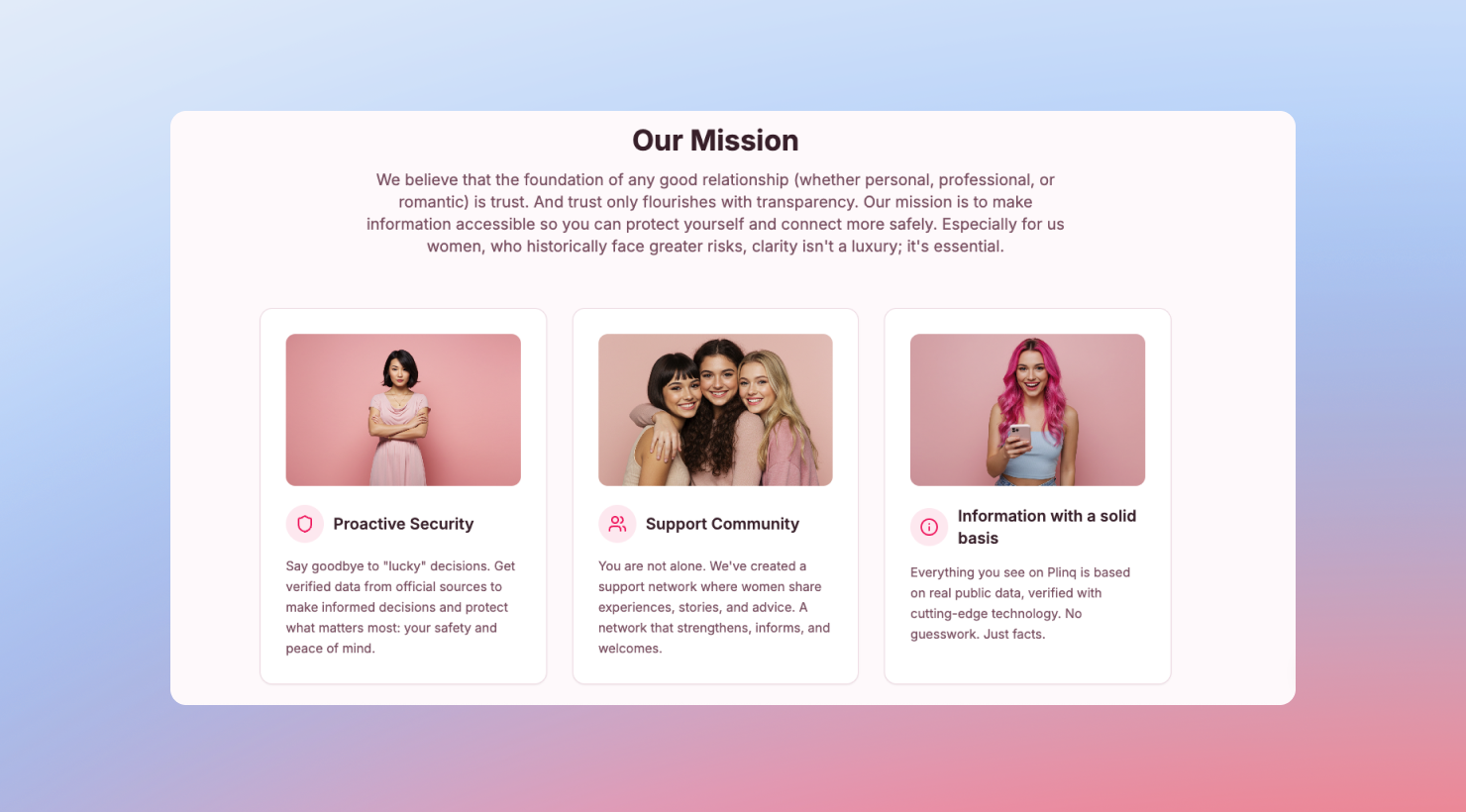 - Why it matters: Preventing real-world harm and femicide. To date, Plinq has helped women avoid 200+ potentially dangerous situations.